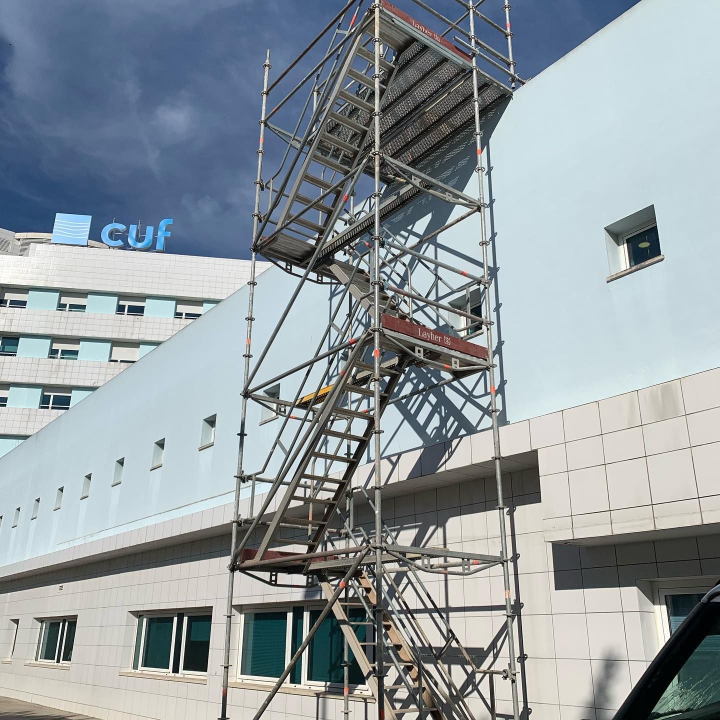 Dispomos de vários tipos de andaimes — de fachada, torres móveis, escadas de acesso, escoramentos e coberturas — para responder a qualquer desafio técnico com flexibilidade e eficiência.